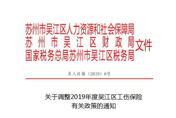 關(guān)于調(diào)整2019年度吳江區(qū)工傷保險有關(guān)政策的通知